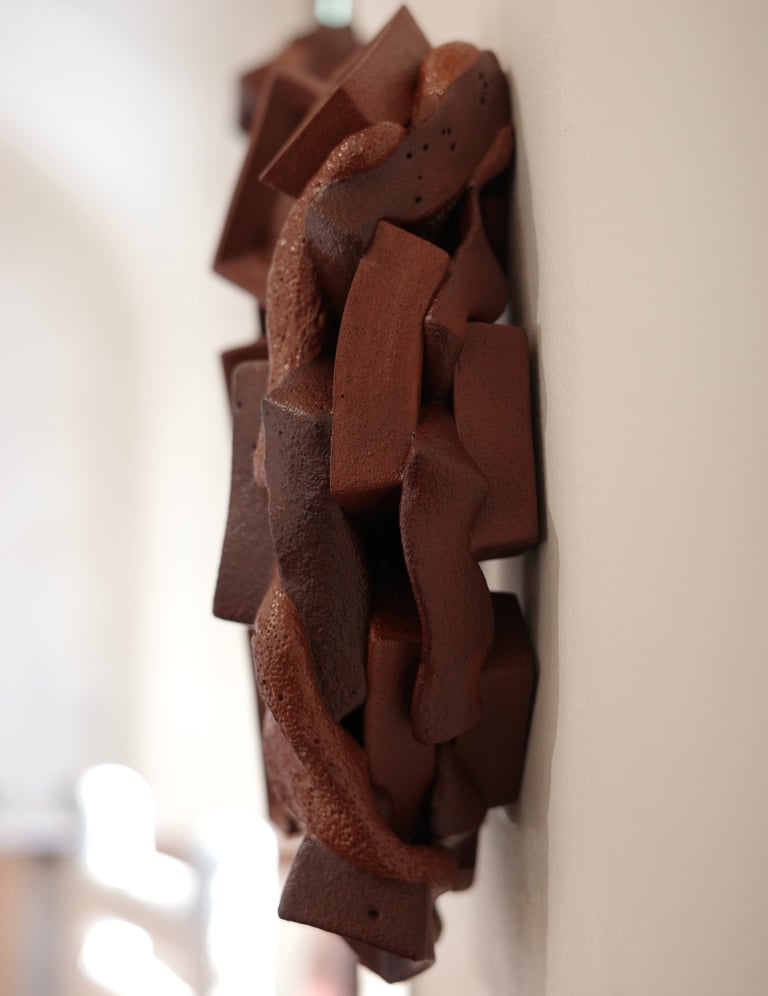 My ceramic process involves glaze-casting techniques, using the heat of the kiln to construct and deconstruct ceramic towers. These acts of formation and dissolution echo themes of migration, memory, and place. Through this process, I aim to unearth a renewed sense of belonging and invite viewers to reflect on their own experiences of transition and identity.